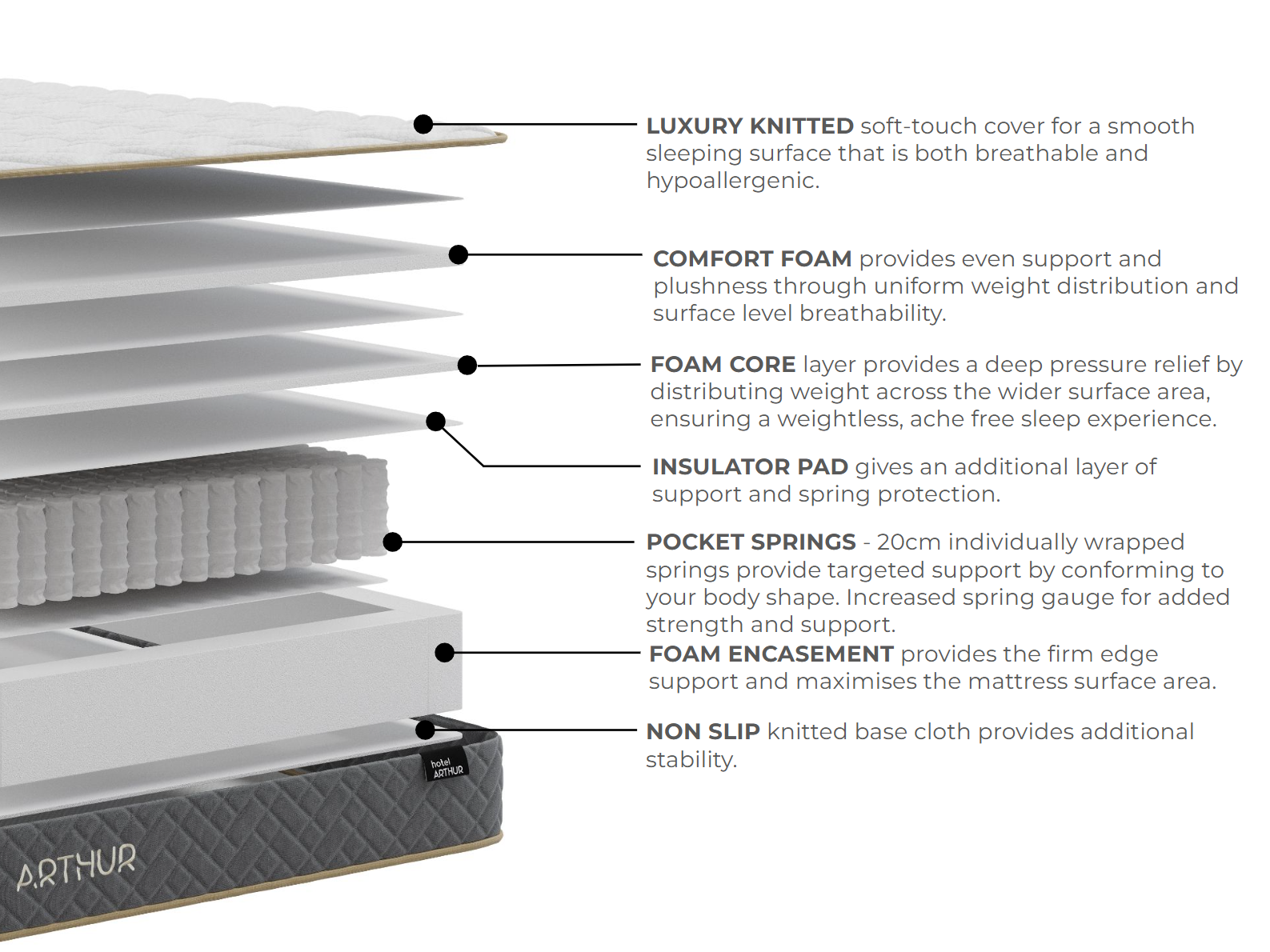 Aside from comfort and support, the mattress is renowned for its convenience. Most notably, the Hotel Arthur is delivered vacuum-packed, allowing for a straightforward setup. After unpacking the mattress, simply wait a few hours, and it'll be ready for use. Additionally, inclusions such as the handles on either side of the mattress allow for easy rotation, while the anti-slip fabric helps ensure the mattress remains in place.