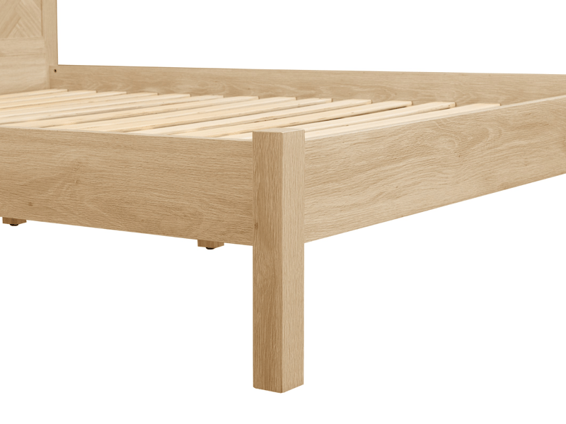Inspired by the symmetry and precision of classic chevron patterns, the Herringford range brings an element of architectural finesse to your bedroom. Each piece is thoughtfully constructed from high-quality particleboard and finished with a laminated oak effect that captures the essence and visual warmth of real wood.
