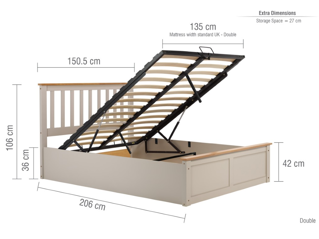 Ottomans are designed so you can utilise your space in better ways, rather than for storage. With an opening base that opens from the foot end, the frame holds up the mattress through its gas spring system. The gas piston strength is 588 N for this frame. Great for storing extra bedding, linens, pillows and so much more.