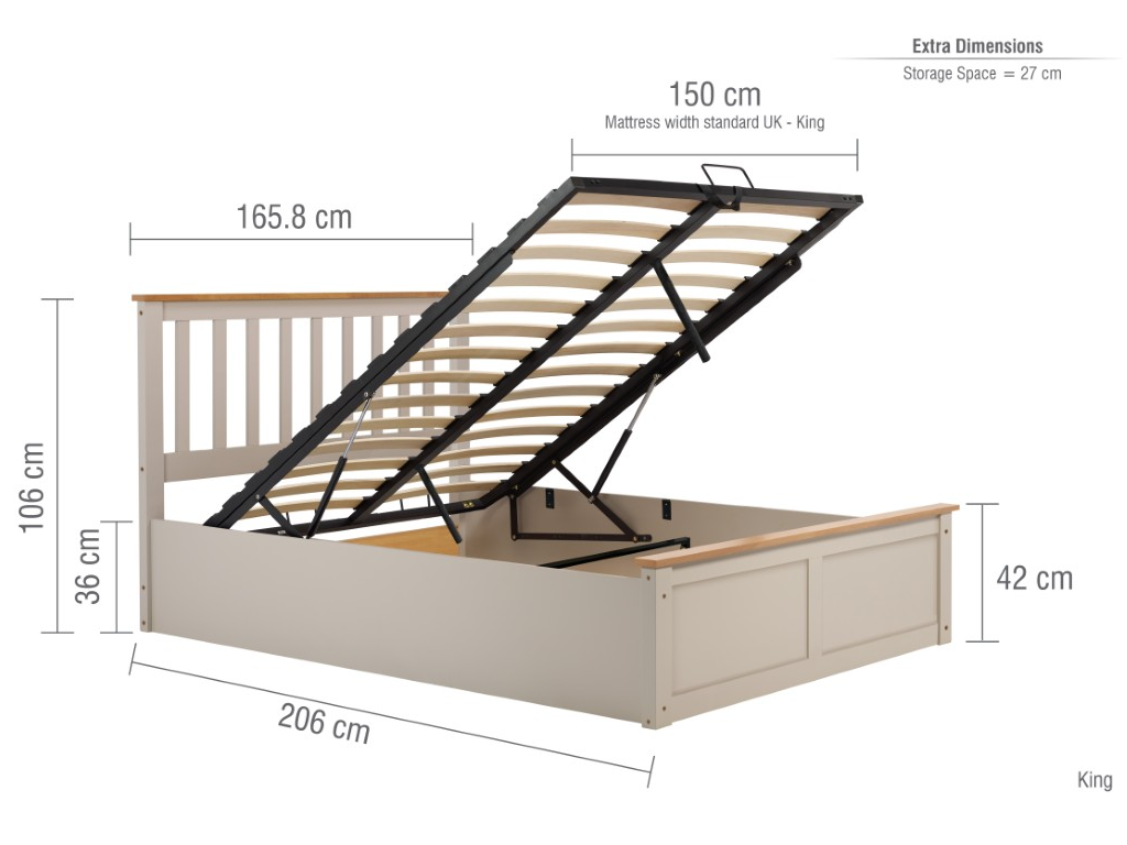 Ottomans are designed so you can utilise your space in better ways, rather than for storage. With an opening base that opens from the foot end, the frame holds up the mattress through its gas spring system. The gas piston strength is 588 N for this frame. Great for storing extra bedding, linens, pillows and so much more.