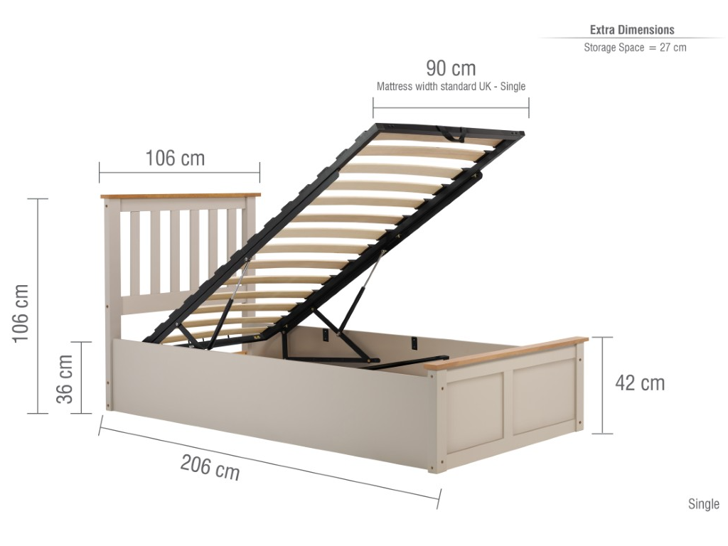 Ottomans are designed so you can utilise your space in better ways, rather than for storage. With an opening base that opens from the foot end, the frame holds up the mattress through its gas spring system. The gas piston strength is 588 N for this frame. Great for storing extra bedding, linens, pillows and so much more.