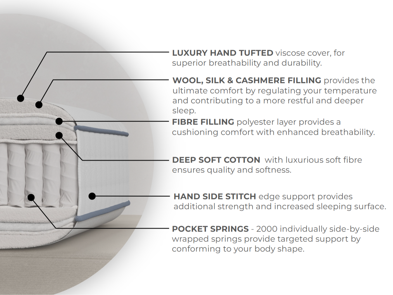Premium Pocket Springs: Individual springs for bespoke, orthopaedic support and zero motion transfer.
