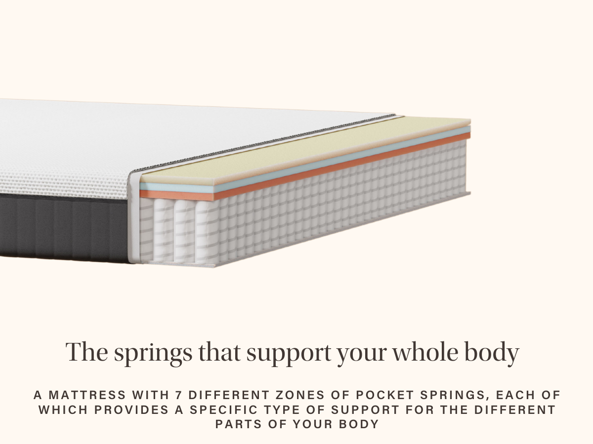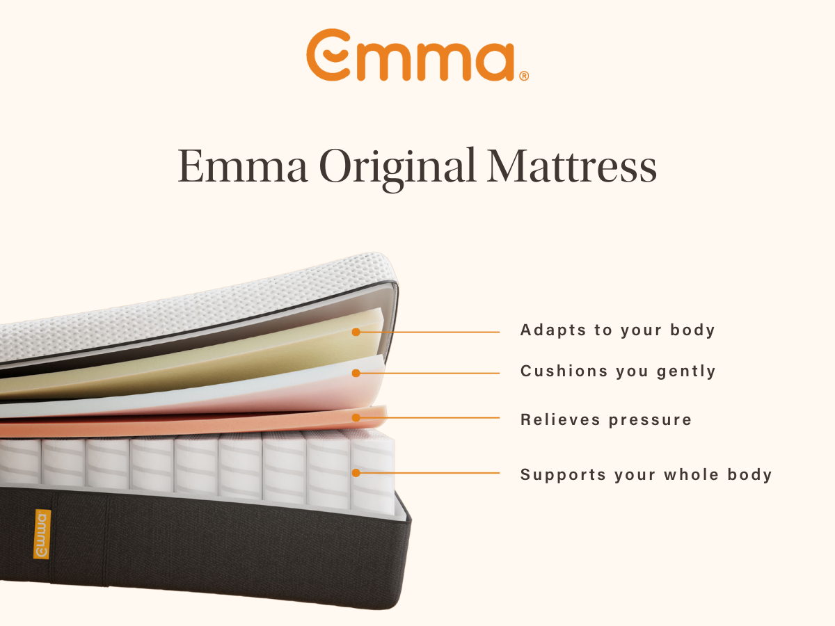 The moment your head hits the pillow, you'll experience targeted support across the mattress's entire surface. The mattress's 430 springs all function independently from one another and in relation to any movements to relieve pressure and soothe minor aches and pains. With this in mind, gone are the days of feeling sore and achy every morning; instead, expect to feel rejuvenated and ready to take on the day ahead. As you'd expect from Emma, they've gone above and beyond. Their pocket springs are now taller to ensure maximum airflow and work with the breathable foams to allow for the ideal sleep environment. There's more to pocket springs than just tailored support, though. Has your sleep ever been disrupted by your partner moving throughout the night? If so, you'll appreciate the inclusion of pocket springs. These springs are recognised for their motion isolation properties; each spring works independently, meaning your partner's movements won't disturb your side of the bed. Enjoy a restful, undisturbed sleep even if they toss and turn.