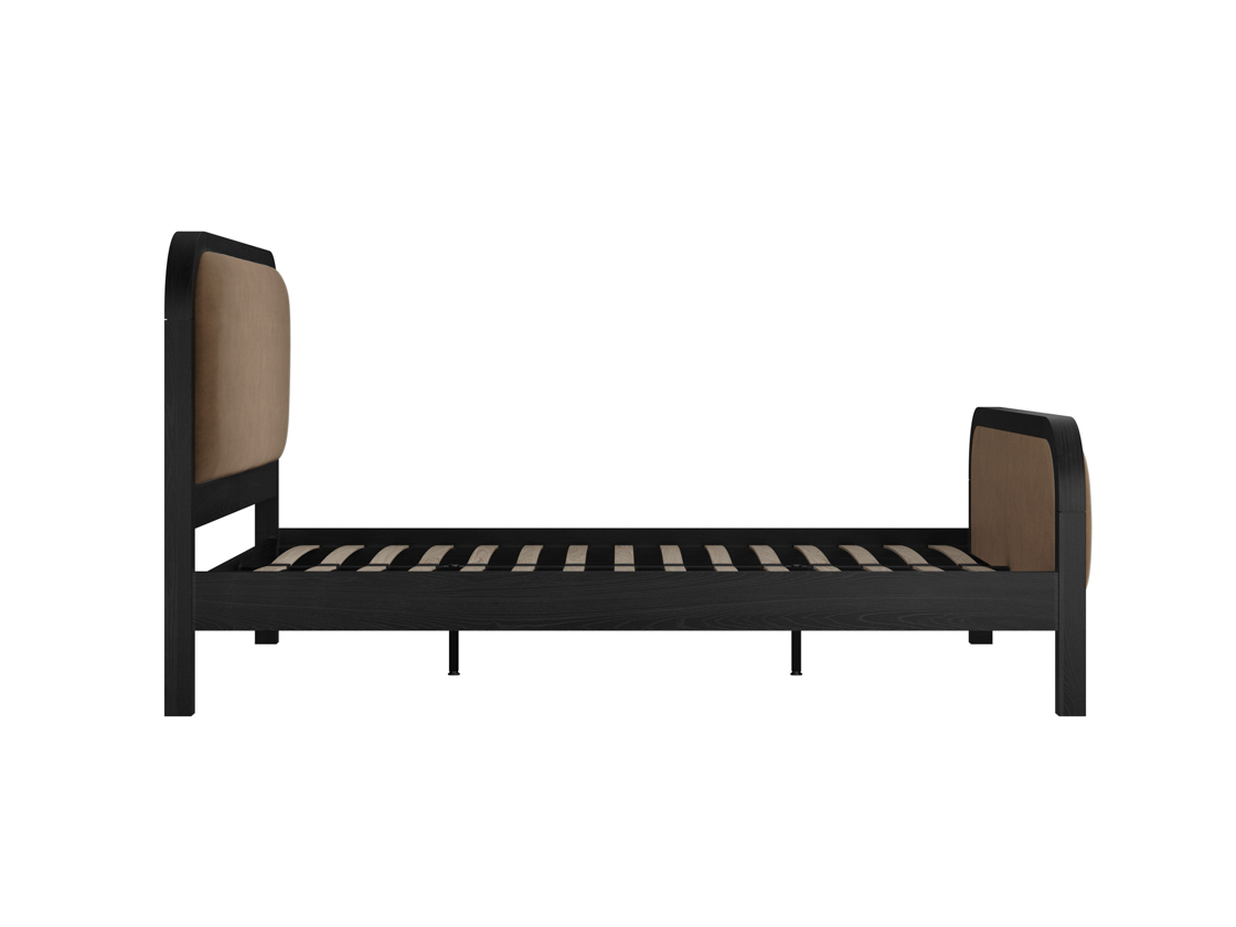 Transform your bedroom into a haven of modern elegance with the Ines Mole Bed featuring a sleek black curved wooden edge. Crafted with meticulous attention to detail, this bed exudes sophistication ...