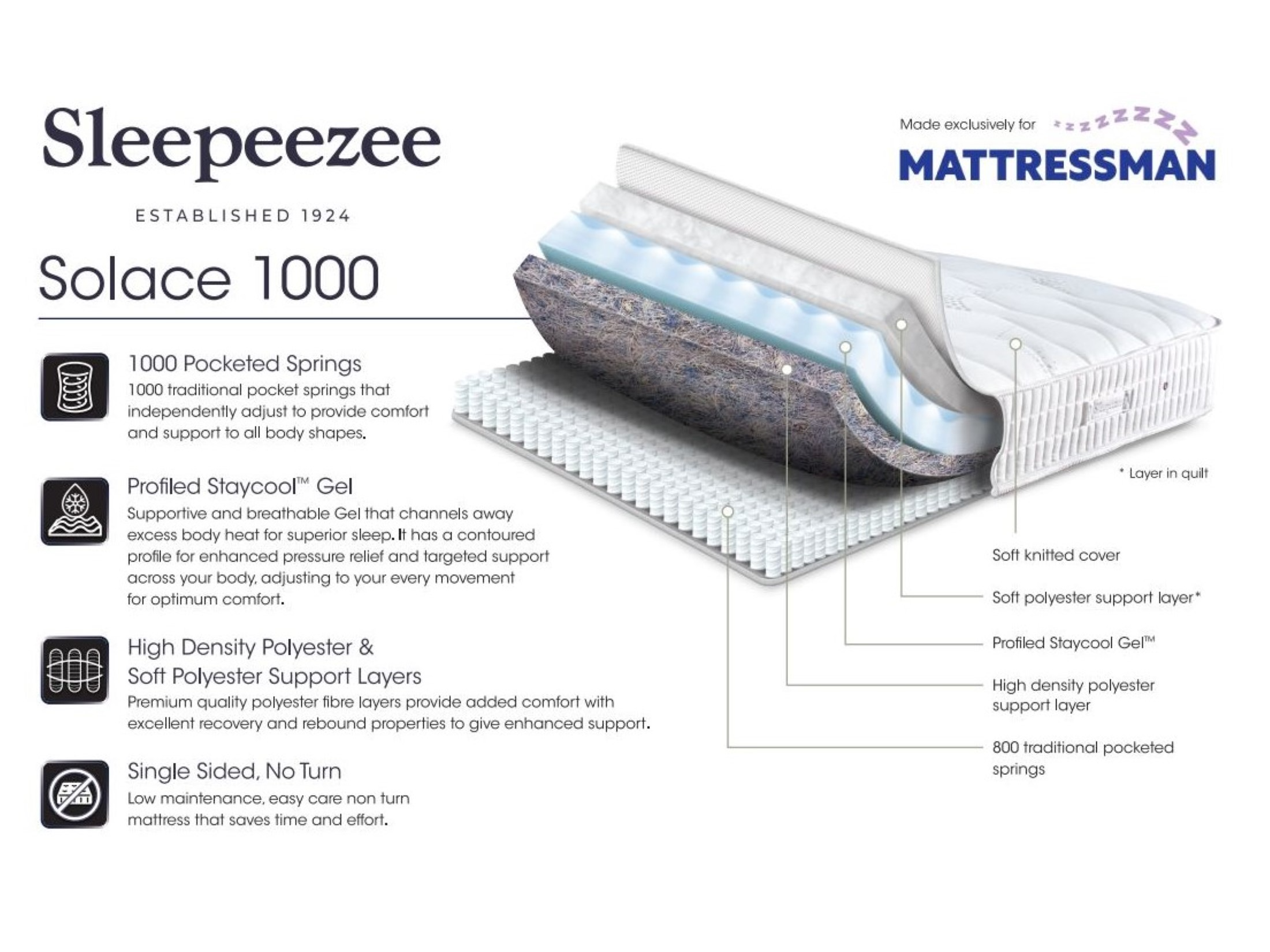 Sleepeezee Solace 1000 MattressExperience superior comfort and cooling support with the Solace 1000 Mattress from Sleepeezee, a trusted British brand established in 1924. Expertly made in the UK and ...