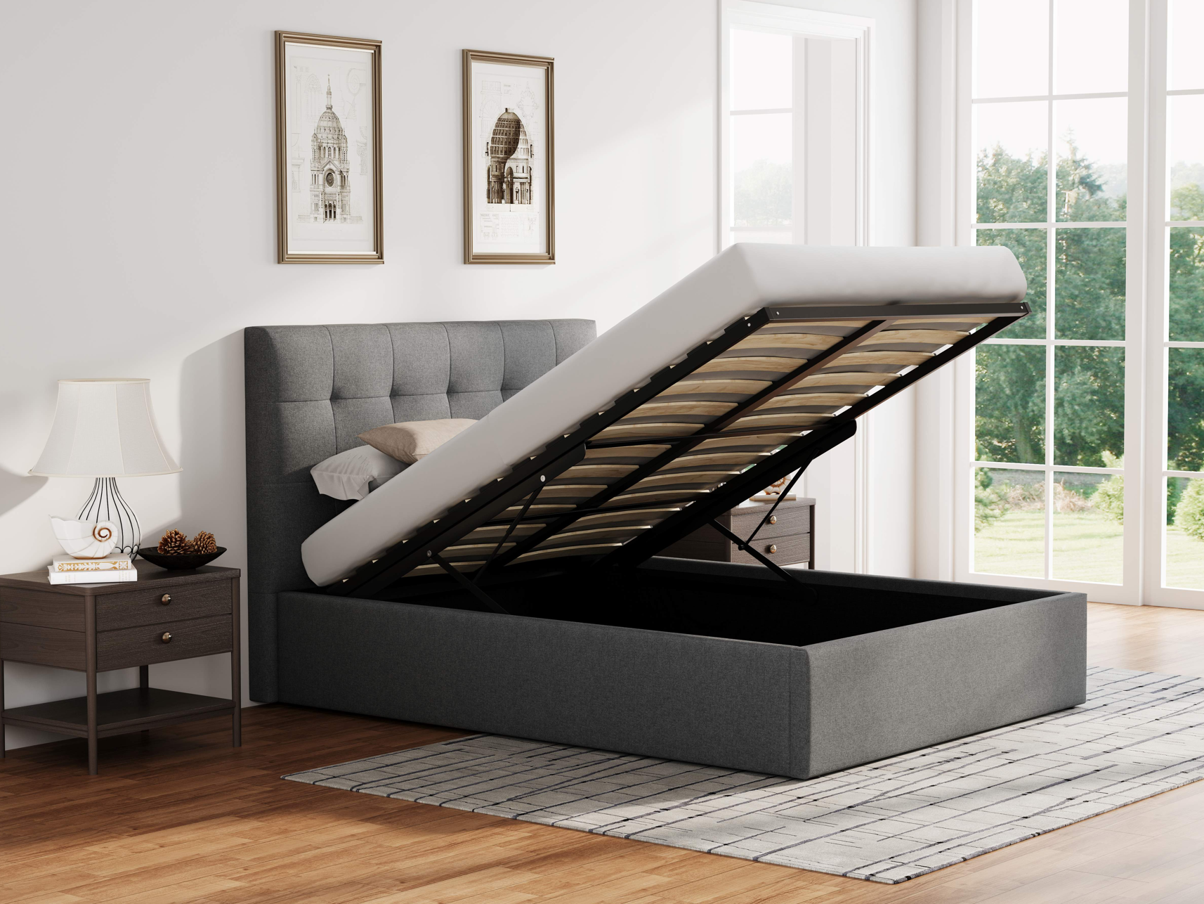 Harper Ottoman Bed – Grey FabricThe Harper Ottoman Bed in Grey fabric upholstery offers practical style and everyday convenience at an affordable price.With its square tufted headboard, the ...